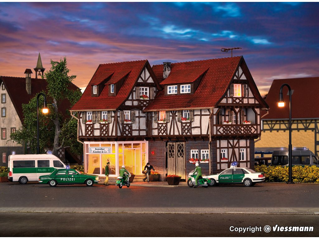 H0 - Klenotník s loupežnou scénou a LED osvětlením, funkční sada / Vollmer 43600