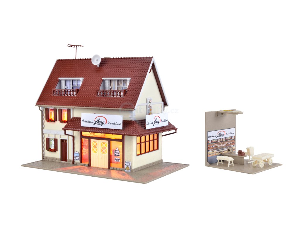 H0 - Pekařství Lang s interiérem a osvětlením, funkční sada / Vollmer 43633