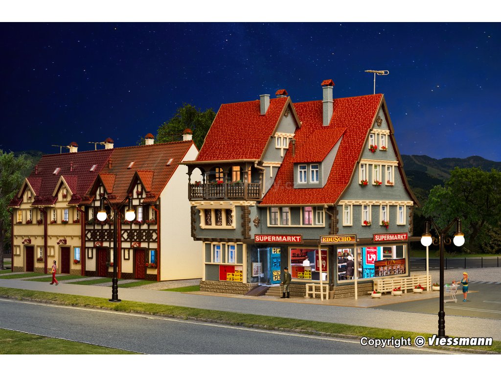 H0 - Supermarket s interiérem a osvětlením, funkční sada / Vollmer 43660