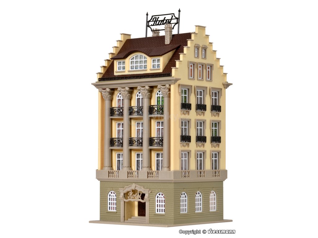 Tento model je konstruován tak, že každá strana představuje viditelnou stranu. Můžete například umístit 2 domy těsně vedle sebe, a přesto budou vypadat jinak. Budova je vybavena mnoha detaily, např. železnými mřížovými ozdobami, jemnými balkony, nápadnými sloupy a mnoha dalšími. Se 3 stavebními sadami můžete postavit např. hotel Grand tak, že všechny 3 sestavíte dohromady. Rozměry: D 8,5 x Š 8,3 x V 17 cm.