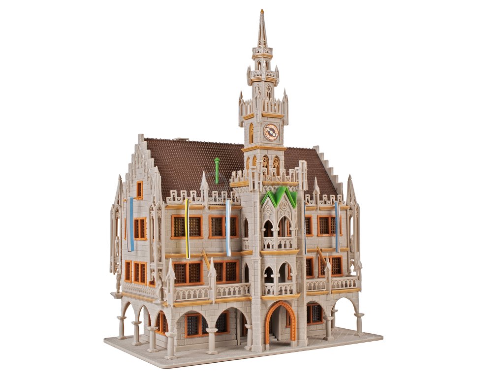 Tato krásná radnice byla vytvořena podle vzoru radnice v Mnichově. Tuto detailně propracovanou radnici zdobí četné věžičky a špičaté oblouky v suterénu. Rozměry: D 14 x Š 9,5 x V 18,5 cm.