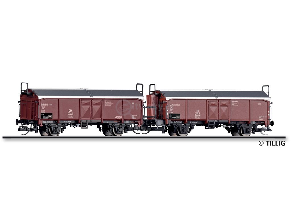 Souprava nákladních vozů DB se dvěma vozy s posuvnou střechou Kmmks 51Güterwagenset der DB