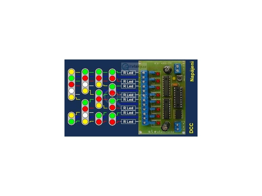 Dekodér je určen pro ovládání světelných návěstidel, možnost nezávisle ovládat až osm výstupů. Je plně individuálně programovatelný a je z výroby dodáván v nastavení ovládání a osazen LED v barvách pro: