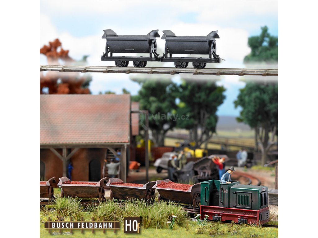 Tyto polní železniční vozy jsou vybaveny prototypovými hákovými spřáhly a jsou proto kompatibilní i s lokomotivami a osádkovými vozy z řady důlních železnic Busch.
