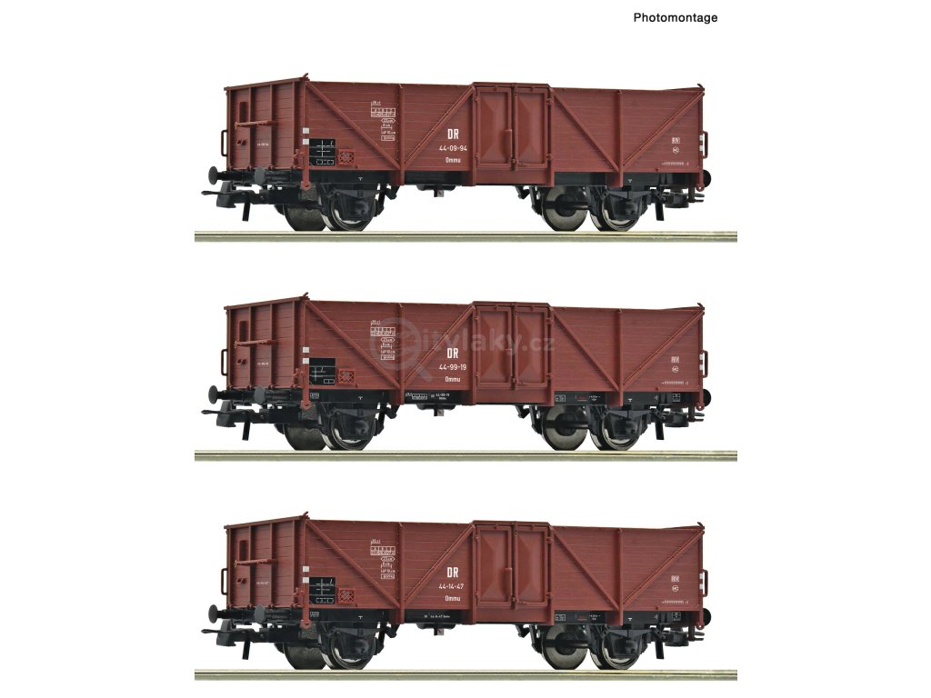 H0 - set 3 otevřených nákladních vozů Ommu, DR, Ep. III / ROCO 6600115