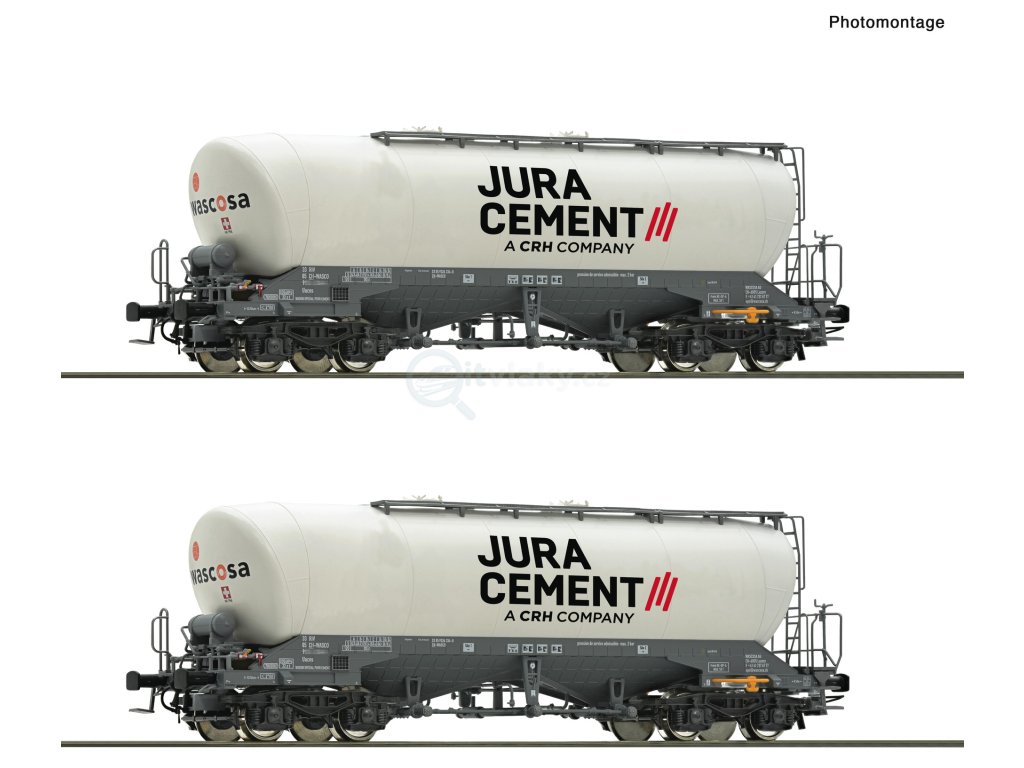 2 piece set: Silo wagons, Jura Cement/WascosaWagenset mit zwei Silowagen, Gattung Uacns, der Jura Cement/Wascosa. ■ Silowagen mit neuem Logo der Jura Cement ■ 50 Jahre Wascosa weiterhin auf den Wagen aufgedruckt