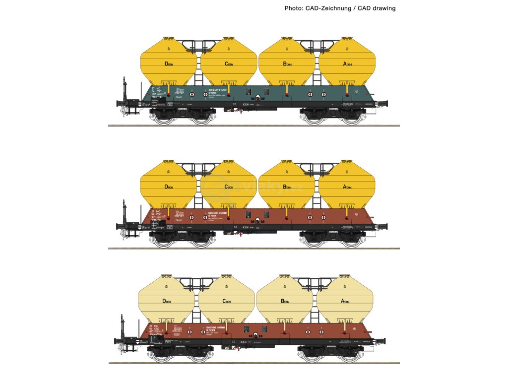 H0 - 3-dílný set Uacs vozů Raj na cement ČSD / ROCO 77001