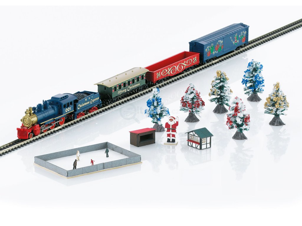 Model: Lokomotiva je vyrobena z kovu. Lokomotiva a tendr jsou vánočně vyzdobeny. Má 5pólový motor a všechny hnací nápravy jsou poháněny. Všechny 3 vozy jsou rovněž vánočně vyzdobeny. Součástí balení jsou také po 3 ozdobených vánočních stromečcích a stavebnice "Vánoční stánky", "Santa Claus" a "Kluziště", které lze sestavit a vytvořit tak malý zimní vánoční trh. Stánky lze v případě potřeby přepravovat také na výškové gondole. 2 rovné koleje, 10 zakřivených kolejí, návěs a spínaný napájecí zdroj 230 V / 12 VA s vhodným vlakovým ovladačem. Součástí balení je také brožura s plánkem kolejiště. Délka vlaku přibližně 300 mm / 11-13/16". Délka kolejí přibližně 510 mm. Tuto sadu lze dokonale rozšířit o sadu 82720, o sady kolejí 8190 nebo 8191, 8192, 8193 a 8194 SET, případně ji lze rozšířit o vlastní návrhy.