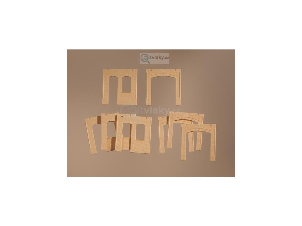 Stěna s otvory na okna a dveře 4ks a stěna s otvorem na vrata 4ks. Rozměr: 46 x 49 mm.