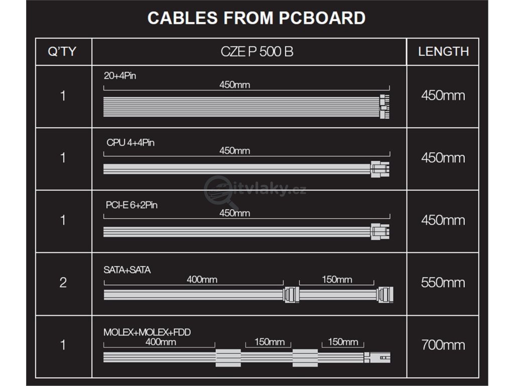 - 1x napájecí kabel pro MB 20+4pin
