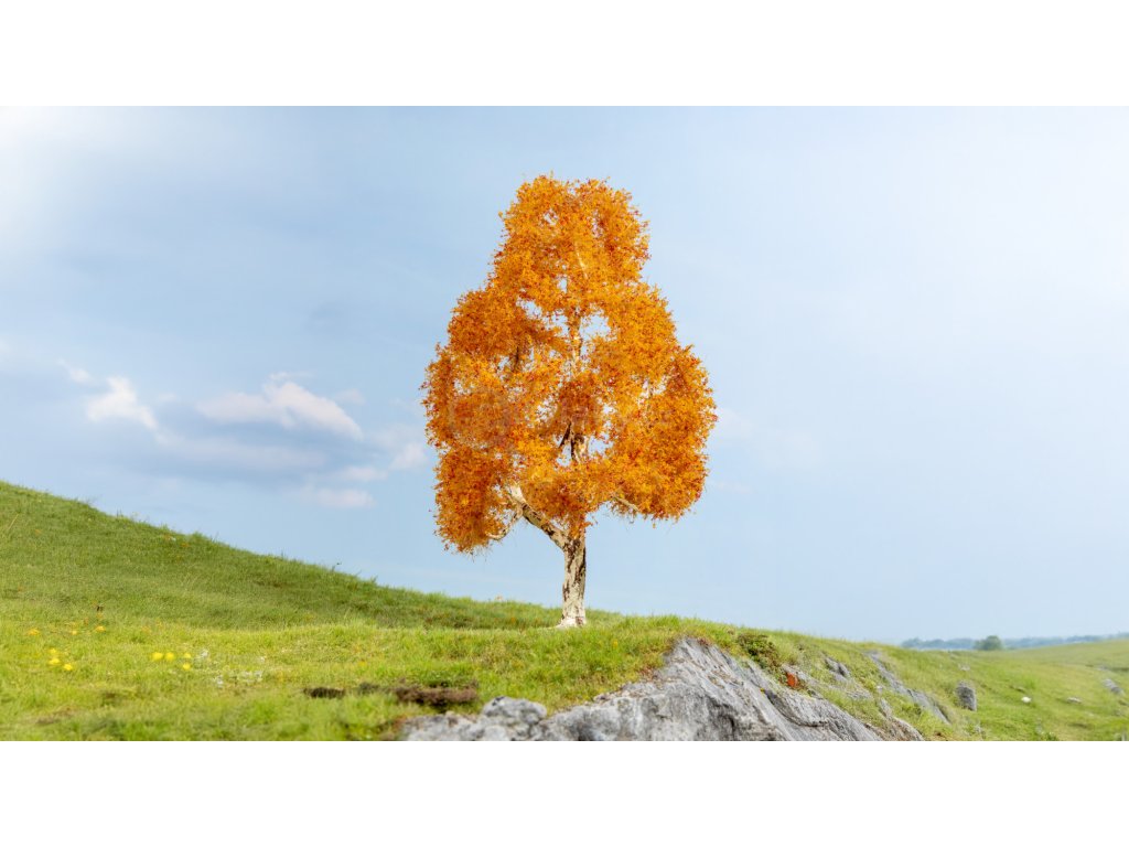Doplňkový prvek vhodný pro kolejiště a dioramata. „1, 0, H0 – Bříza, podzimní / NOCH 20129“.