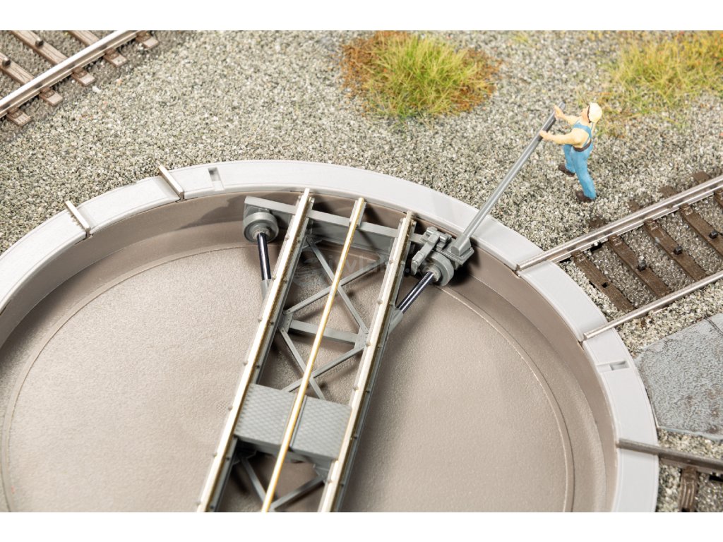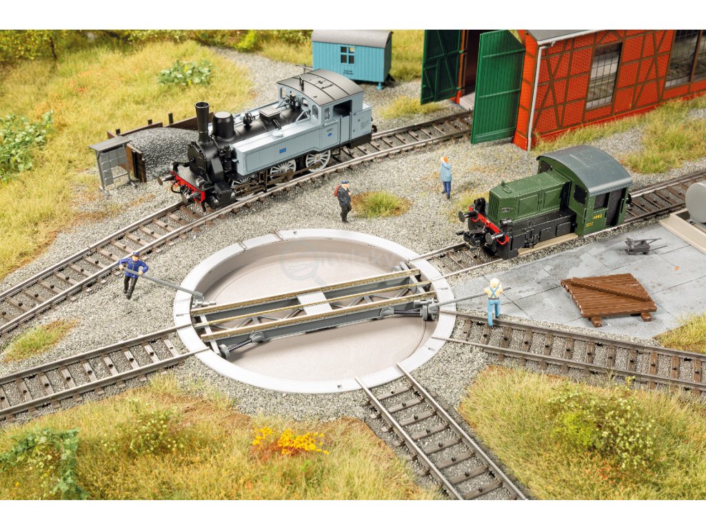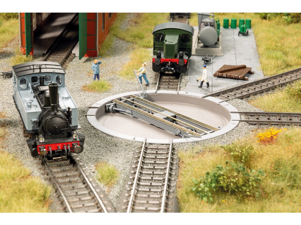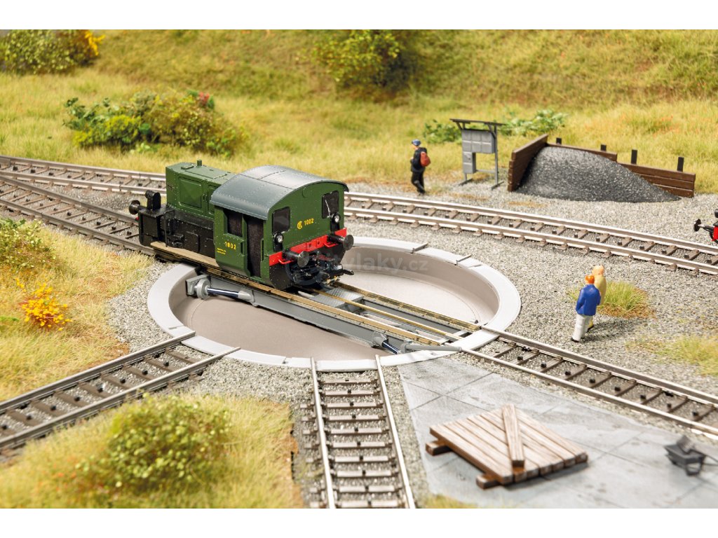 Tato kompaktní točna dodává průmyslovým traťovým úsekům realistický provoz. Je určena pro vagóny a menší lokomotivy a hodí se pro různé posunovací úkoly.