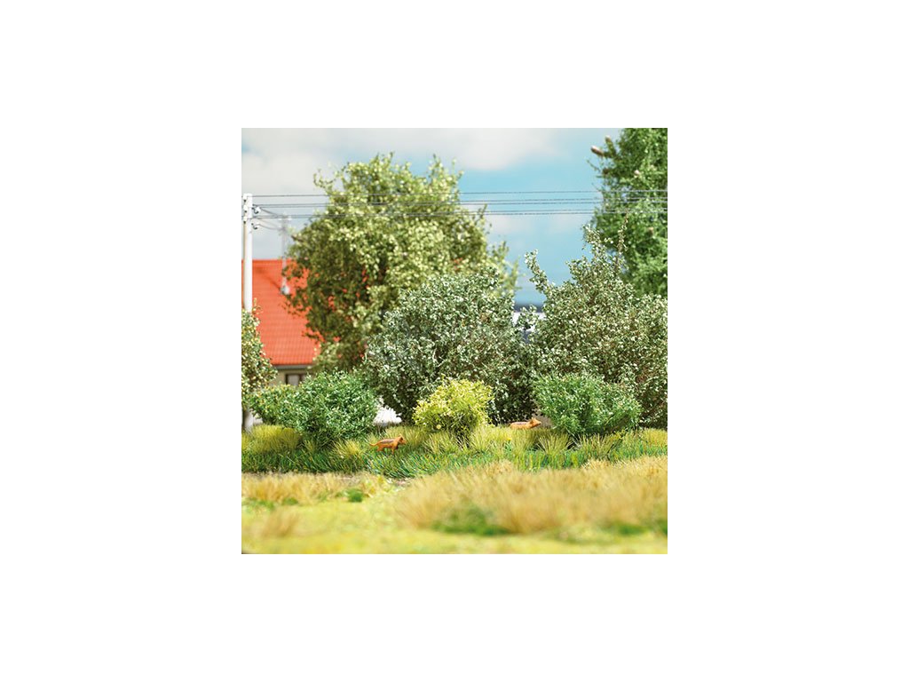 Sada osmi mikro keřů z řady NATUR PUR Exklusiv v jarním zbarvení, určená pro ty nejjemnější detaily v krajině. Keře mají výšku pouhých 20 mm, takže jsou použitelné pro více měřítek a ideální třeba na svahy, náspy, okraje cest nebo mezi koleje.
