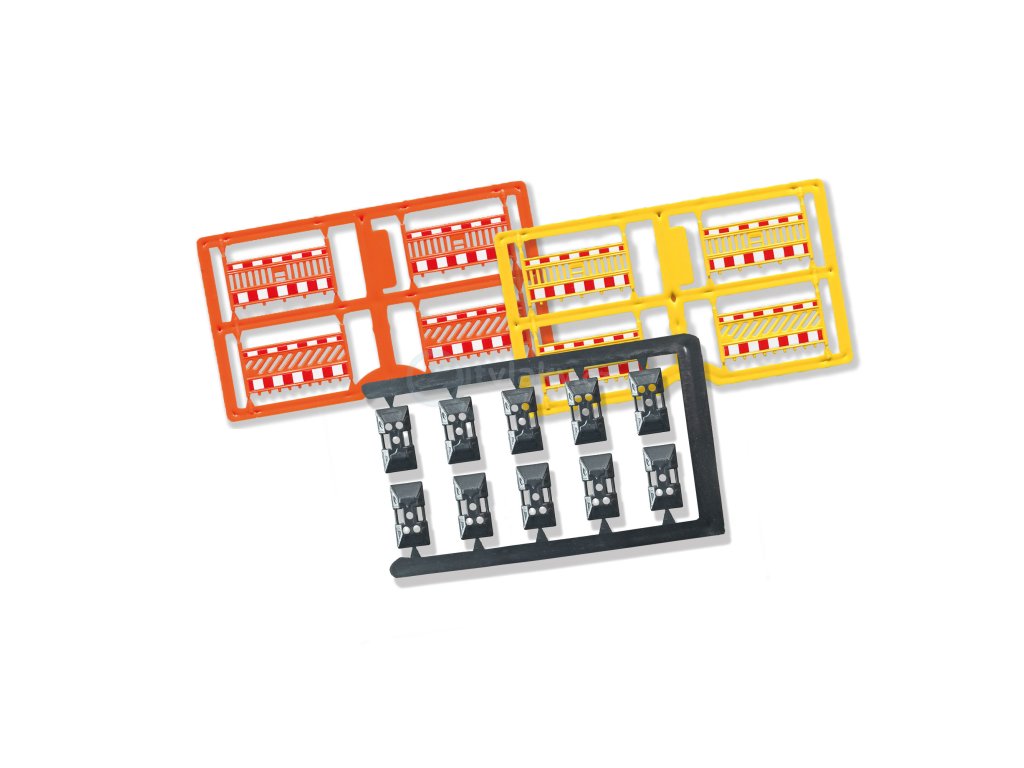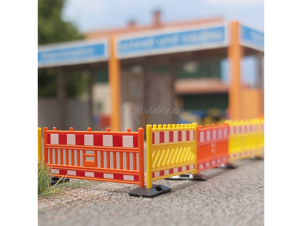 Stavebnice mobilního staveništního oplocení, ideální pro realistické zabezpečení stavebních prací na kolejišti nebo dioramatu. Hodí se ke stavbám tratí, opravám silnic, mostům, výkopům nebo průmyslovým areálům.