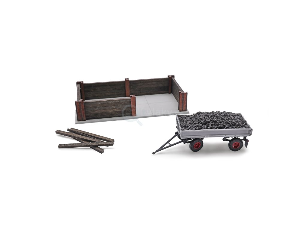 Součástí stavebnice je i model uhlí pro naplnění bunkru a navíc přívěs IFA HW 60 jako hotový model (barevné provedení se může lišit od obrázku).