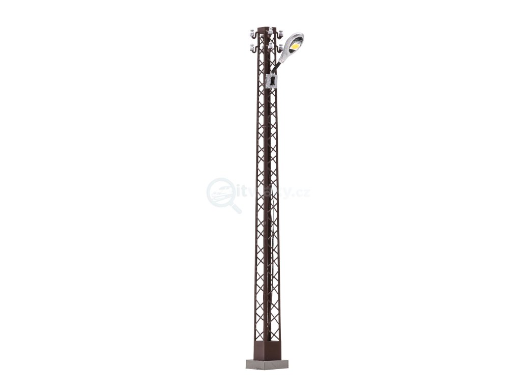 Stožár je kovový, filigránsky zpracovaný, se záměrnou rezavou patinou a izolátory v horní části. Světelný efekt je v modelu věrně řešen pomocí žluto-oranžově svítících LED, takže výsledkem je autentické, lehce tlumené noční osvětlení.