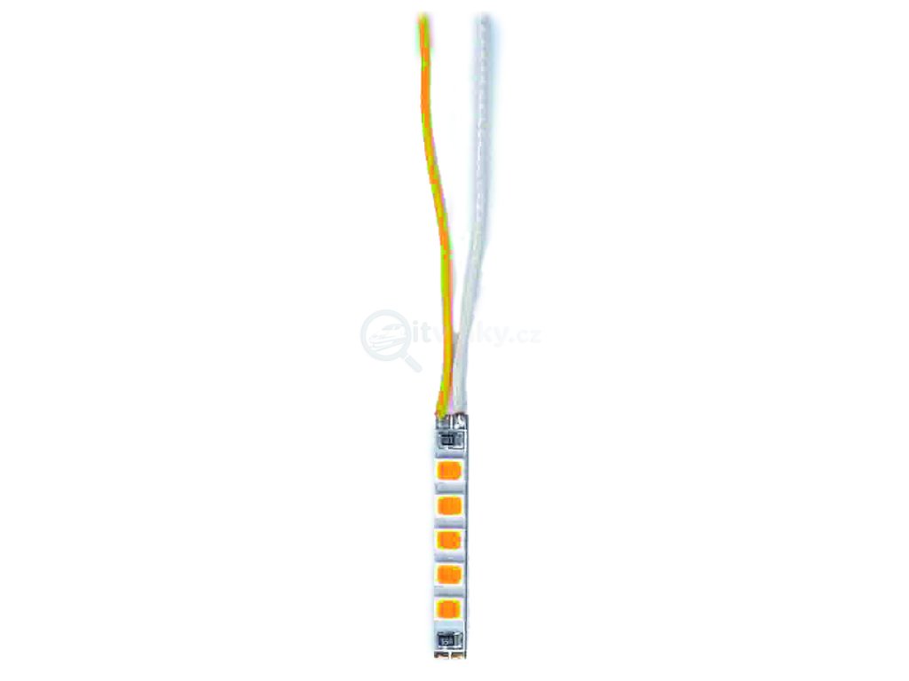 These LED light strips are intended solely for stationary lighting applications, such as simulating neon tubes in buildings or at train platforms. They are made from flexible material. The LED strips are designed for operation with the power modules, items 5215, 5225, or 5208, or the LED dimmer, item 5590, or with DC voltages of approx. 18 V and above. The included resistors allow for brightness adjustment. Recommended operating voltage: 24 V DC, total current without series resistor: 11 mA. Connection cable included. The light strip, equipped with 5 warm-white (2200k) LEDs, has a total length of approx. 17 mm.Doplňkové parametry