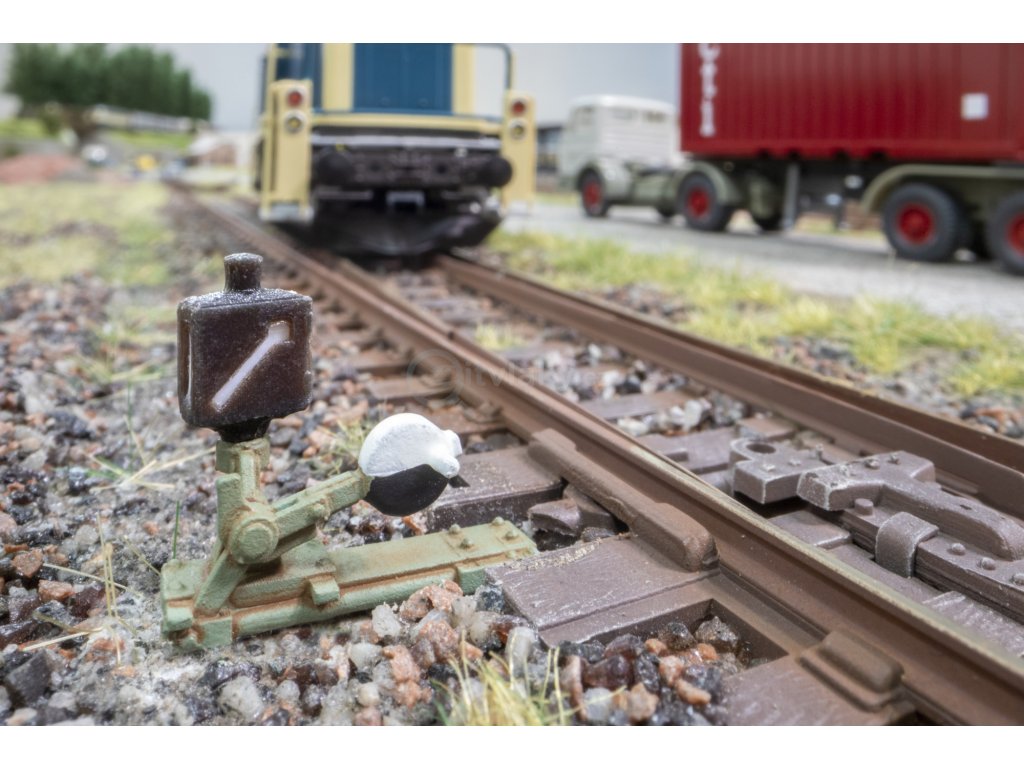 Doplňkový prvek vhodný pro kolejiště a dioramata. „N – Spínací páka s lucernou spínače vpravo / NOCH 13911“.