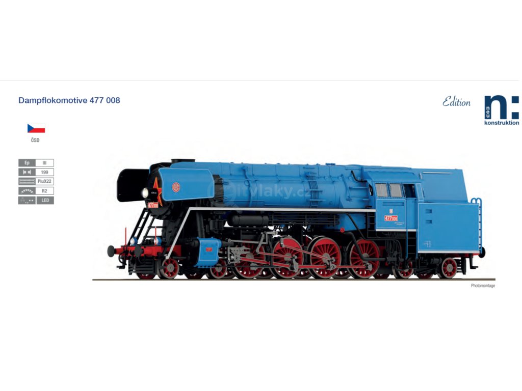 H0 - parní lokomotiva Papoušek 477 008, ČSD / ROCO 7100033RO