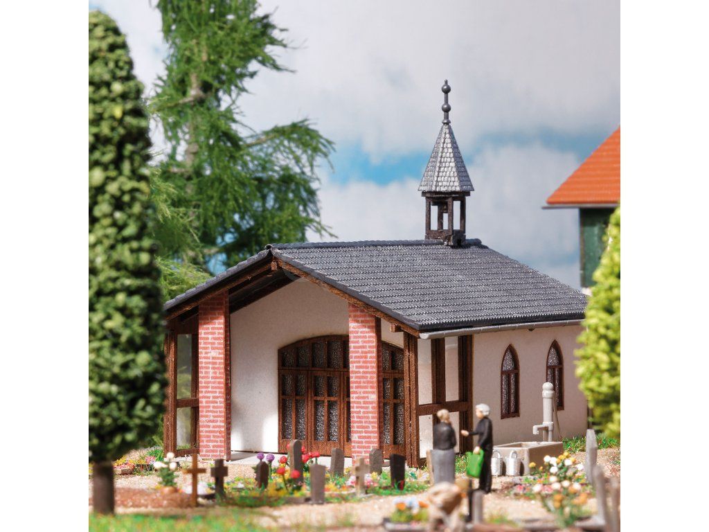 Stavebnice hřbitovní kaple (malé smuteční síně) určená pro důstojné a klidné scény na hřbitovech, v parcích nebo historických částech měst. Objekt působí střídmě, realisticky a přesně odpovídá menším kaplím, jaké známe z venkovských i městských hřbitovů.