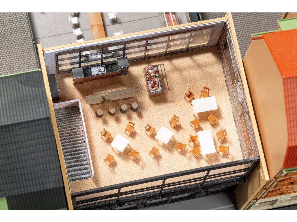 Tato moderní pasáž s velkou prosklenou fasádou dodává hloubku městským scenériím. Součástí je velmi rozsáhlá sada interiérového vybavení pro detailní zpracování. V horním patře se nachází bistro. Přechod vede na terasu ve dvoře se stoly a židlemi, ideální pro rušné scény v centru města.
