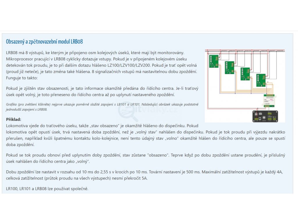 LRB08 je kombinovaný indikátor obsazenosti a zpětné vazby. Nezávisle lze sledovat 8 traťových úseků.
