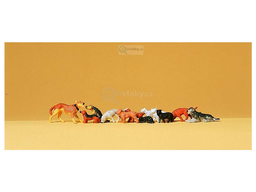 H0 - domací zvířata, psi a kočky, 12ks / Preiser 14165