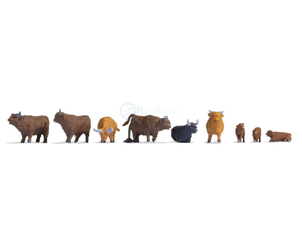 Se stavebnicí Highland Cattle pro měřítko H0 si můžete detailně vyzdobit venkovské scény a ještě více tak přiblížit realitu na svém železničním modelu. Sada obsahuje devět figurek. Jedno telátko leží na louce, druhé natahuje hlavu dopředu a třetí zkoumá dosud neznámý svět. Jeden ze šesti dospělých jedinců leží v trávě, další žere a další vyplazuje jazyk. Dva kusy dobytka navíc spokojeně postávají na louce, zatímco další se vyprazdňuje.